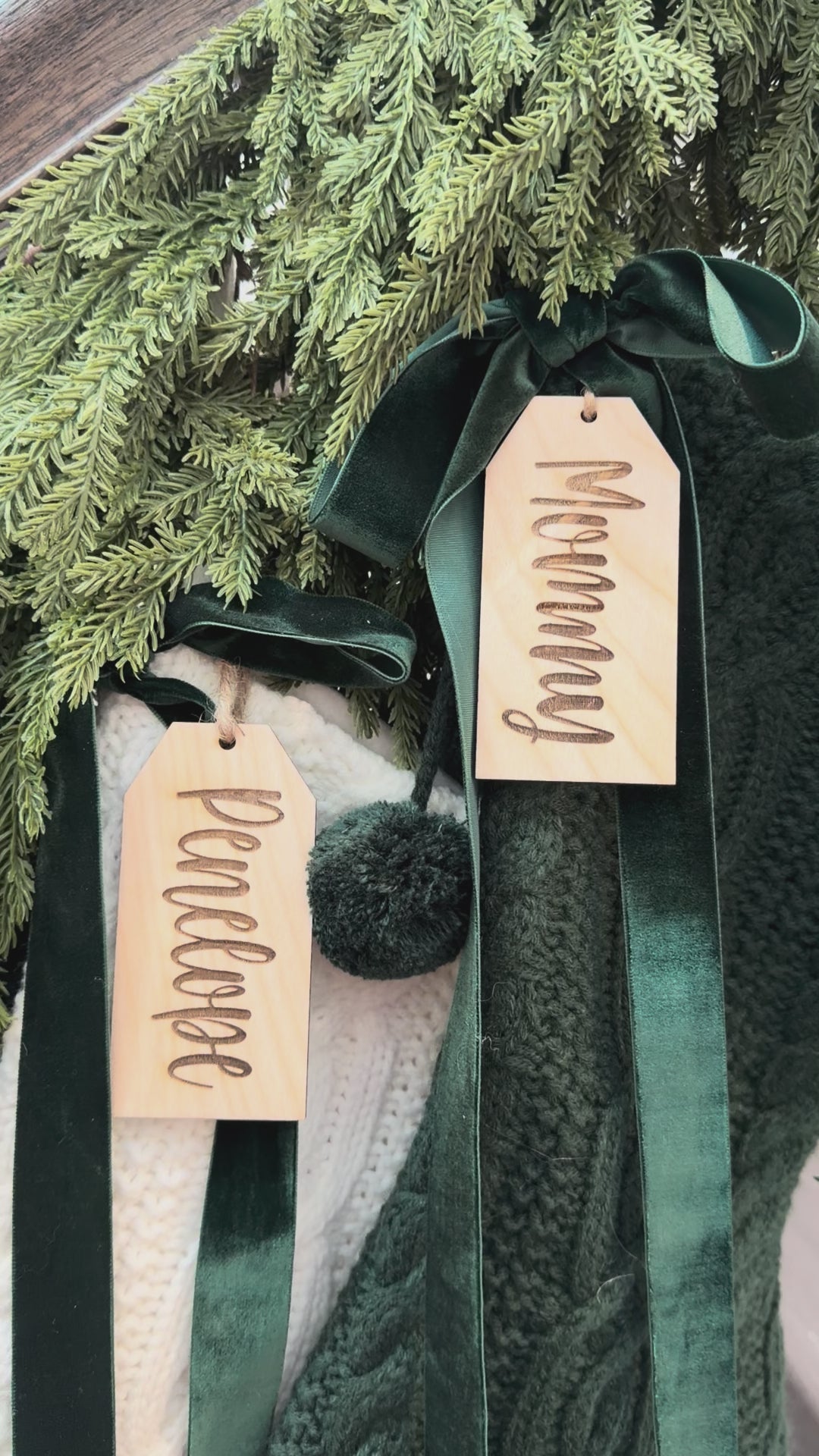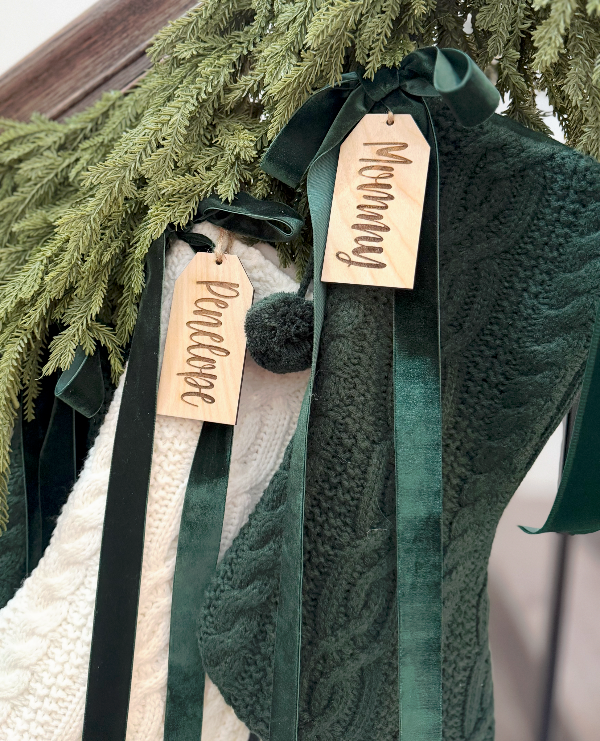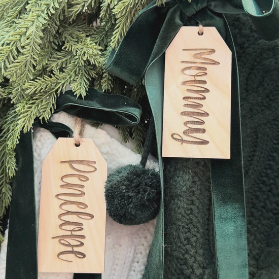 These custom wood tags are the perfect way to add a personal touch to Christmas stockings, table settings, holiday décor and gift giving.
